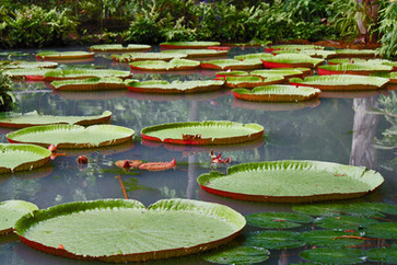 It is characterized by having large circular leaves up to 3 meters in diameter that float on the surface of the water on submerged stems that reach 7 to 8 m in length. They can support up to 40 kilos if the weight is well distributed on its surface.